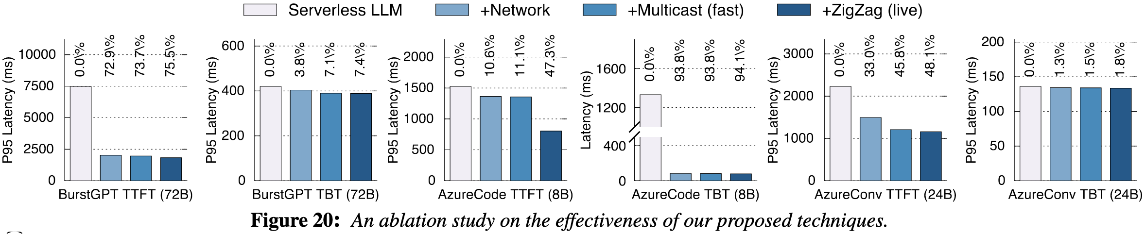 利用高速网络的多播机制实现\(O(1)\)甚至\(O(0)\)缓存下的数据面加速。所有机器的内存加起来足够部署所有模型,因此\(O(1)\)的 cache 就能避免所有的 cache miss.