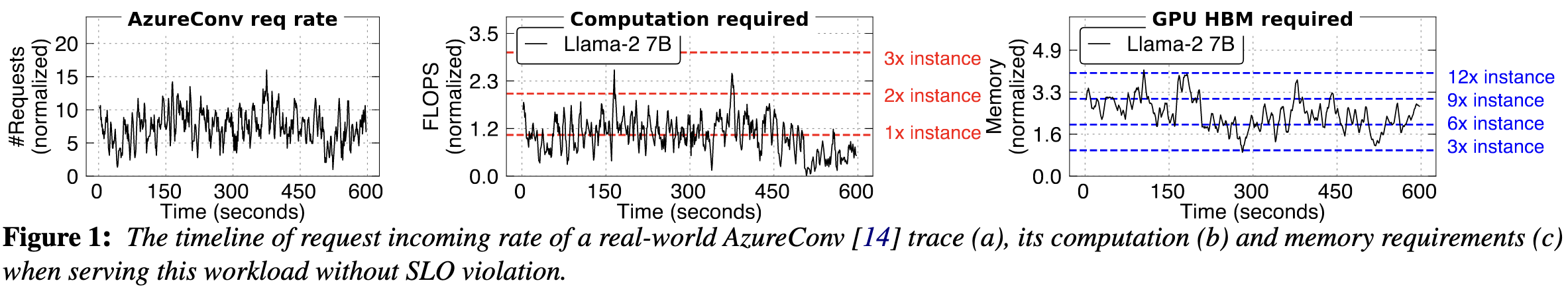 vLLM, DistServe 并不针对云上场景设计,没有 autoscale 的功能,只能通过 over-provision 的方式来满足 SLO. 这会带来 GPU Time 的浪费。
